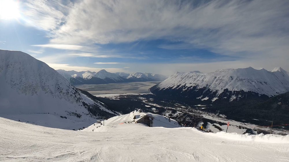 Next up, we move all the way up to the Last Frontier—the U.S.’s largest state, Alaska. Alaska stands out for its staggering snowpacks, with a heavy maritime snow base often allowing seasons to extend well into May. This abundance of snow also permits some of the lowest base elevations in the country, with Alyeska reaching down to just 250 feet above sea level and offering rare views of an ocean-connected inlet from its slopes. Farther inland near Fairbanks, conditions flip, with lighter snowfall and drier coverage dominating the ski experience. Alaska’s resorts also face unique circumstances: early winter days are extremely short, with only a narrow window of daylight in December, but by March, the slopes can stay light until 8pm–which Alyeska conveniently allows visitors to take advantage of with night skiing hours certain days of the week. Extreme cold spells can occur, but conditions when skiing inbounds in Alaska are often more comfortable than you think thanks to a moderating influence from the ocean. Alaska is also world-renowned for its backcountry and heli-skiing, especially in the Chugach near Anchorage and Valdez.