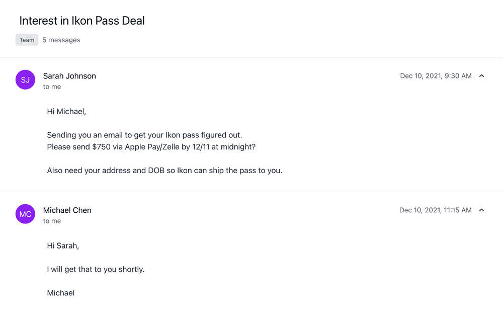What buyers didn’t know was that Greene had no authorization from resorts to sell discounted passes, and they weren’t absorbing the cost difference out of generosity. Instead, the scheme’s origin lay in a mix of identity theft and clever social engineering. When an interested skier or rider responded to one of the ads, Greene or her co-conspirators would move the conversation to private channels—be it text messages, emails, social media DMs—to build trust and gather the personal details needed to buy a pass (name, age, address, etc.). From the outside, it appeared as if Greene was facilitating a routine purchase on the customer’s behalf. In reality, she was preparing to use stolen credit card information to foot the bill.